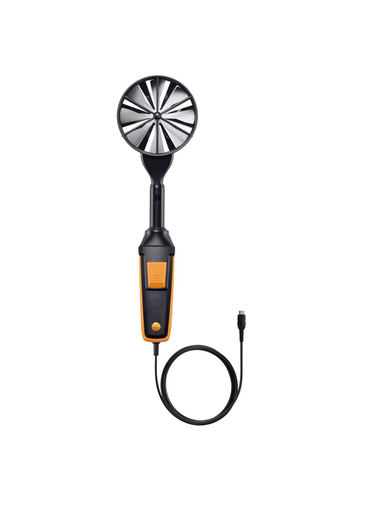 Utilice la sonda de molinete con el instrumento multifuncional adecuado Testo (se adquieren por separado) para medir la velocidad, el caudal volumétrico y temperaturas hasta +70 °C.