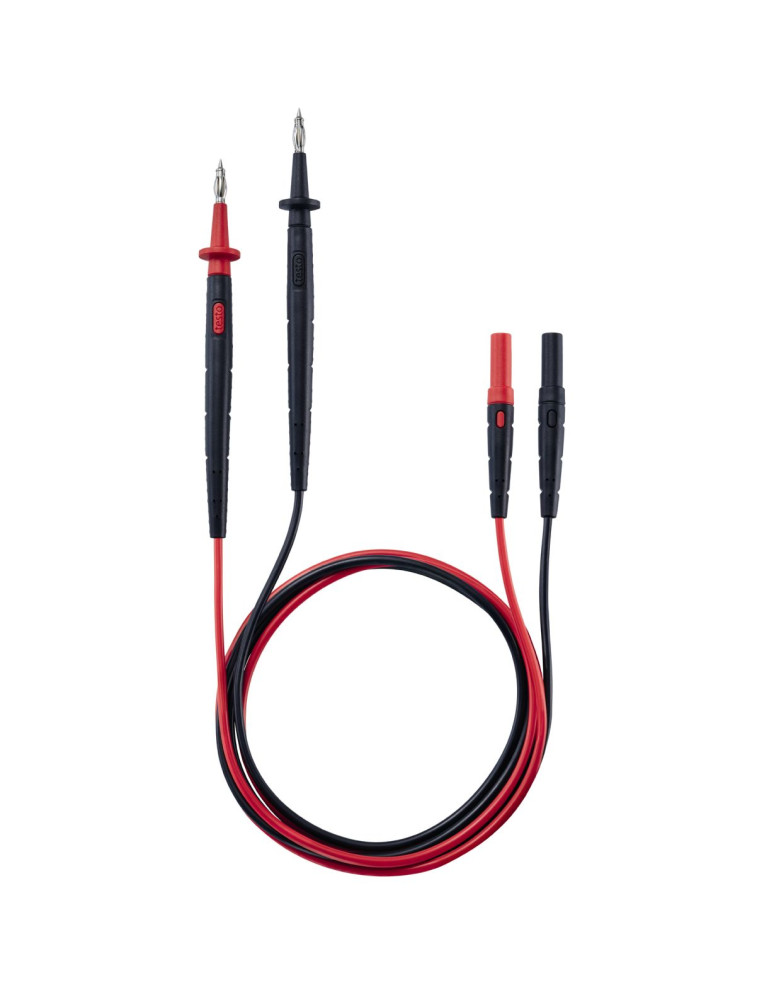 Estos cables de medición estándar de alta calidad con conector recto y una punta de 18 mm de largo pueden conectarse a las pinzas amperimétricas Testo, el multímetro digital Testo o multímetros de otros fabricantes.