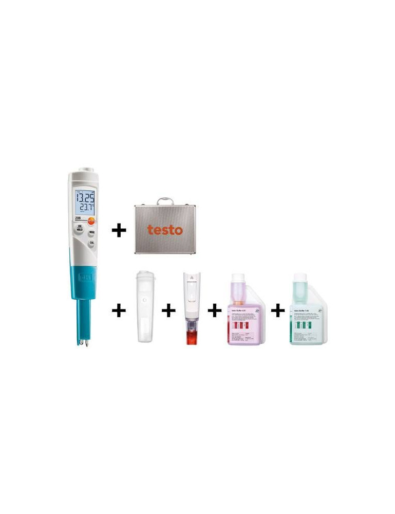 El pH y la temperatura son parámetros importantes para la garantía de calidad de los productos en la industria alimentaria, industria cosmética; en el sector de la tecnología de la calefacción; sanitario y refrigeración; etc. Con el set inicial testo 206-pH1, puede medir directamente la temperatura y el valor pH en líquidos (p. ej. , agua potable o agua de calefacción).