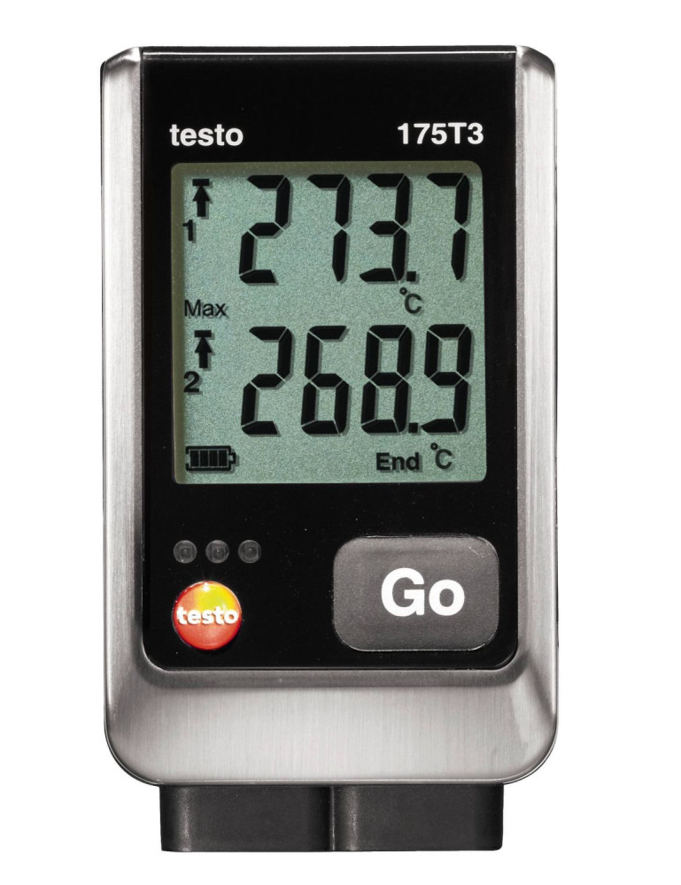 El data logger de temperatura testo 175 T3 está equipado con dos conexiones para sondas termopar externas (tipo T o tipo K). Por lo tanto, el registrador de datos es idóneo para llevar a cabo un registro de temperatura en dos canales. Esto es necesario, por ejemplo, si se desea comprobar la funcionalidad de una instalación de calefacción.El data logger de temperatura mide simultáneamente la temperatura de ida y retorno. Del mismo modo, el registrador de datos se puede emplear en el control de producción industrial si se desea comprobar las temperaturas de proceso en varios puntos.