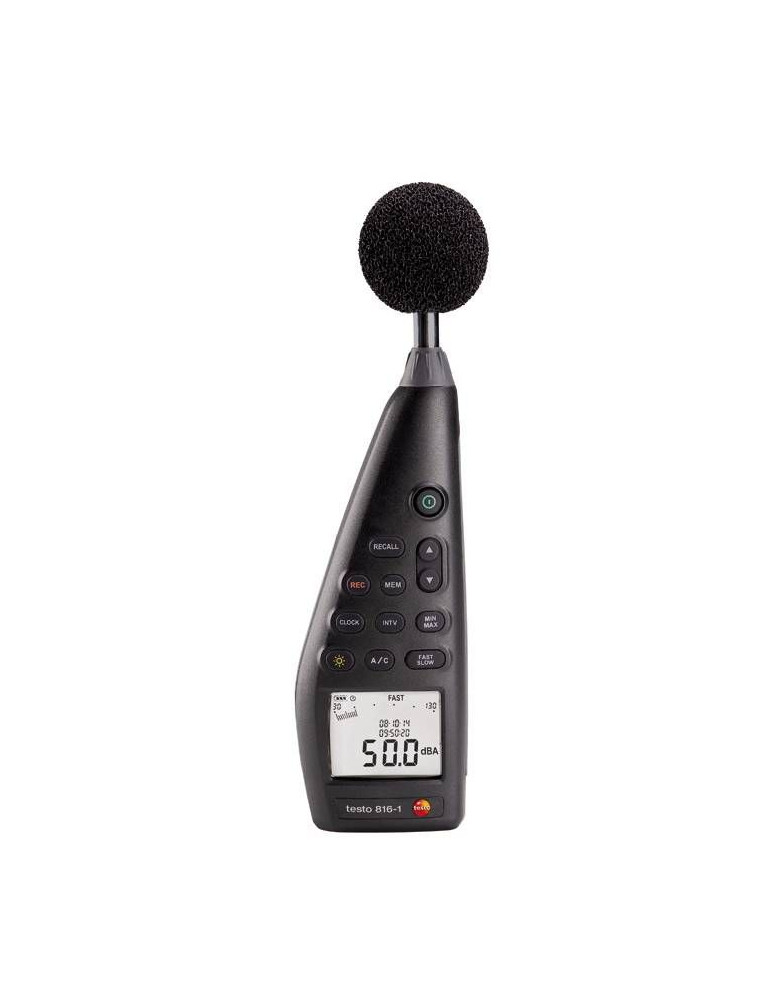 El medidor de ruido testo 816-1 es el instrumento de gama superior de los dispositivos de medición de nivel acústico Testo. Para la medición de ruidos y sonidos en puestos de trabajo y lugares públicos; en la industria y la fabricación; con memoria para datos y software para gestionarlos en el PC. NOTA: el software sólo está disponible en idiomas inglés y alemán.