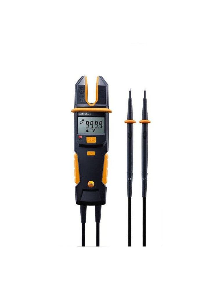 Comprobador de tensión y amperímetro en uno: el innovador testo 755-2. Un medidor completo para casi todas las tareas de medición eléctricas diarias. Con reconocimiento automático de parámetros de medición; puntas de la sonda intercambiables y rango de tensión hasta 1000 V.