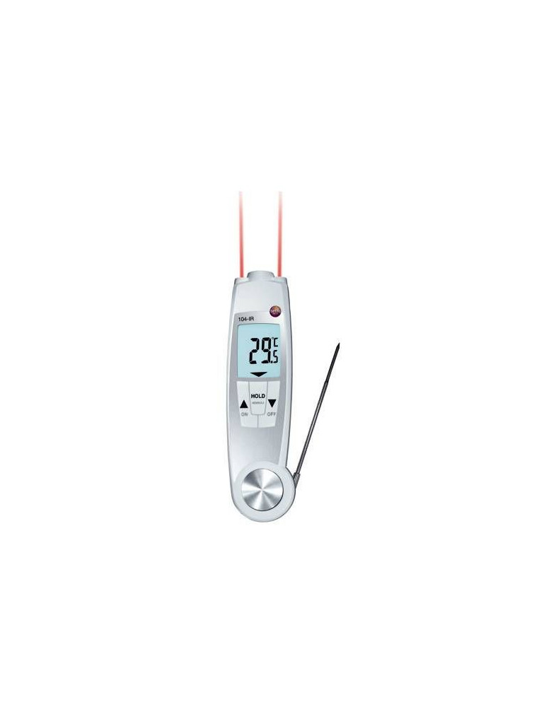 El termómetro infrarrojo para alimentos testo 104-IR es ideal para el control de la temperatura en el sector alimentario. Su tamaño permite llevarlo en cualquier bolsillo y está siempre a mano a la entrada de la mercancía; durante el transporte o la ronda de control en el supermercado.
