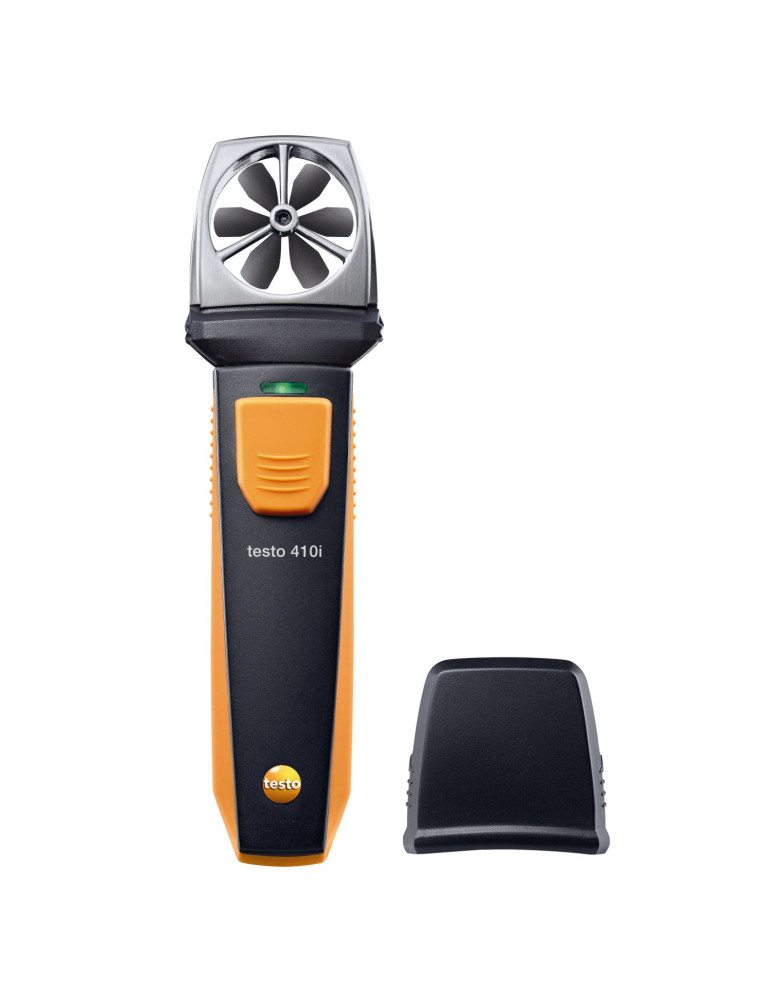 Tecnología de medición profesional en formato compacto: el anemómetro de molinete testo 410i con manejo a través de la app instalada en el smartphone mide rápida y fiablemente el caudal volumétrico; la velocidad del aire y la temperatura en la salida de aire. Con la app testo Smart Probes se leen en la pantalla del teléfono todas las mediciones.
