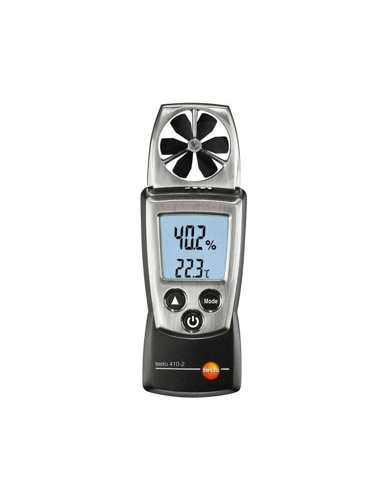 Ideal para las mediciones rápidas en rejillas (salida de aire) y para la supervisión de las condiciones ambiente - también en el exterior: con el anemómetro de molinete testo 410-2 medirá además la velocidad del aire, la temperatura y la humedad ambiente. Sea la temperatura de bulbo húmedo, el punto de rocío, la sensación térmica o la intensidad del viento en la escala de Beaufort: el anemómetro pone el cálculo de estos parámetros a su alcance tan solo pulsando un botón.