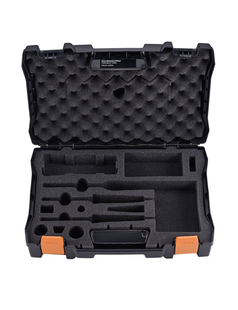 Maleta para transporte de los instrumentos testo 110 / 625 / 720 / 922 / 925 ó 926; con troquel especial para el instrumento, tres sondas, impresora portátil y otros accesorios.